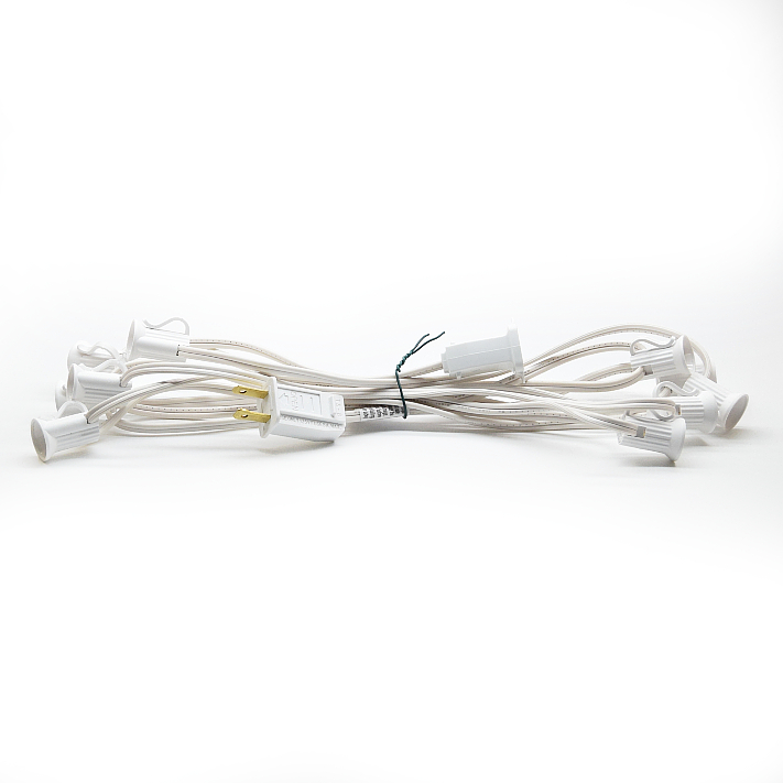 - Our 10′ White C7 light string has 10 sockets spaced every 12”.